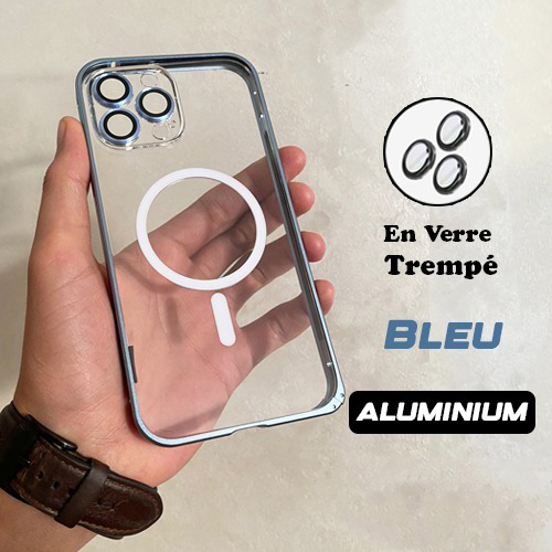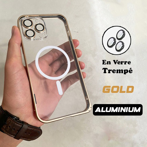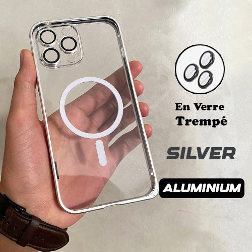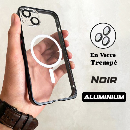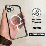 Coque iPhone 16/15/14/13/12 Aluminim MagSafe Antichoc Lens Verre Trempé